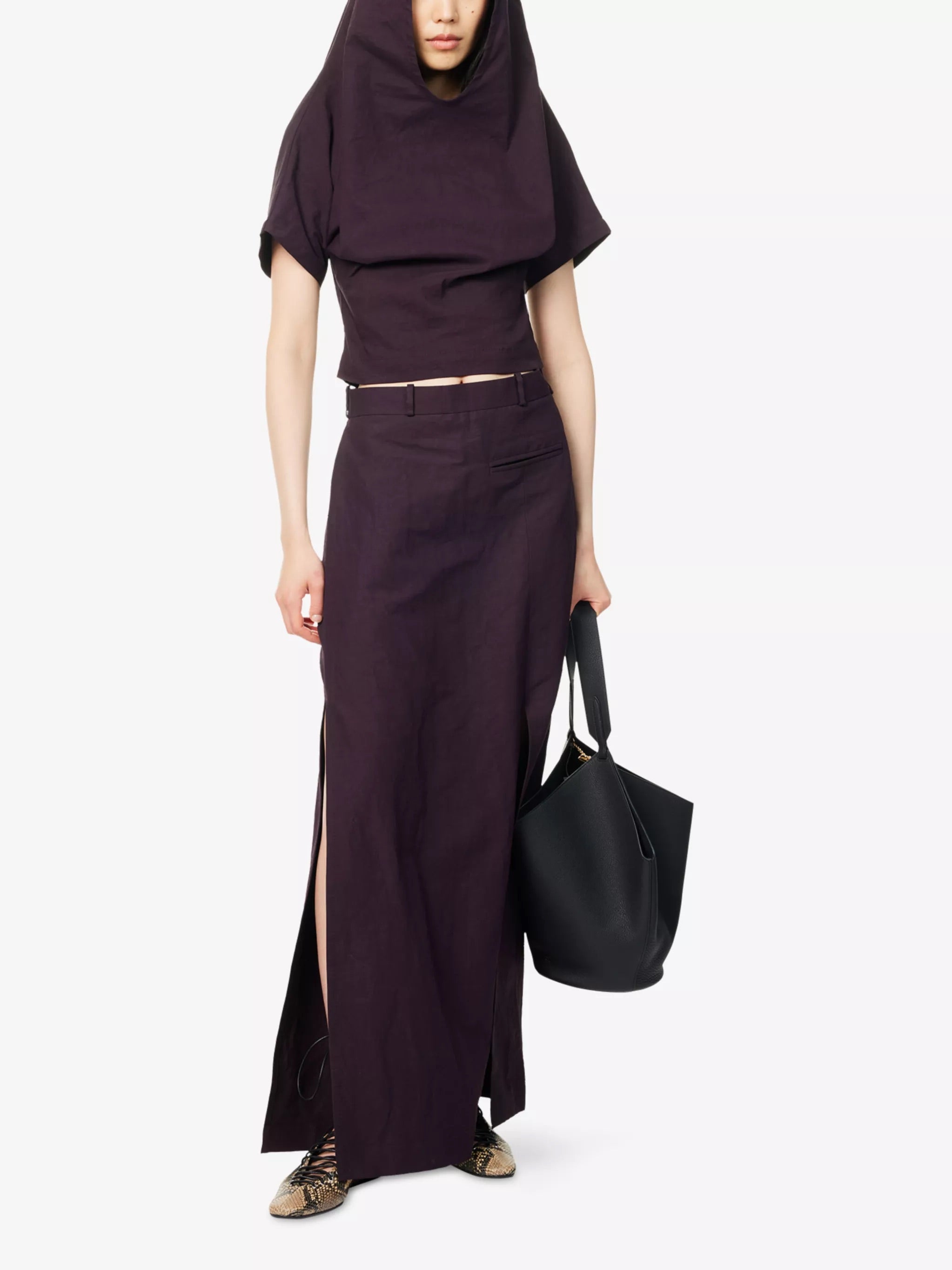 • Purple linen-blend stretch fabric